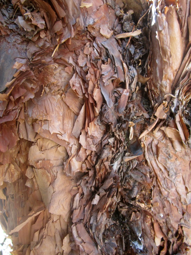 Detail, tree trunk with ‘peeling layers’, a result from the cold weather (physiological adaptation response).