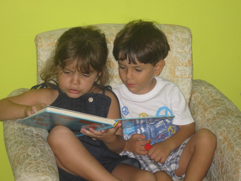 Helping our oldest children with their homework in Portuguese, having them practice English phonics with their native-speaker father, seeing the children have routine conversations with their dad in Spanish and English; and reading bed time stories in … who knows what!