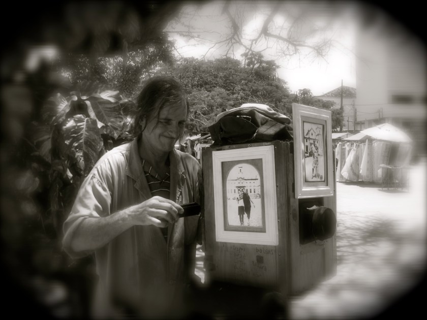 The man responds to the name of “Daniel the Argentinean“, and with his original equipment, offers the by-passers a unique opportunity to have an antique-style picture taken. He’s got it all: the chemical mixtures, developers, films, and once done, surprises you with a nostalgic impression – reminding me from when I was a child growing up in Brazil, and my mom would take my brother and I for the 2×2 photographs, for school’s documents…
